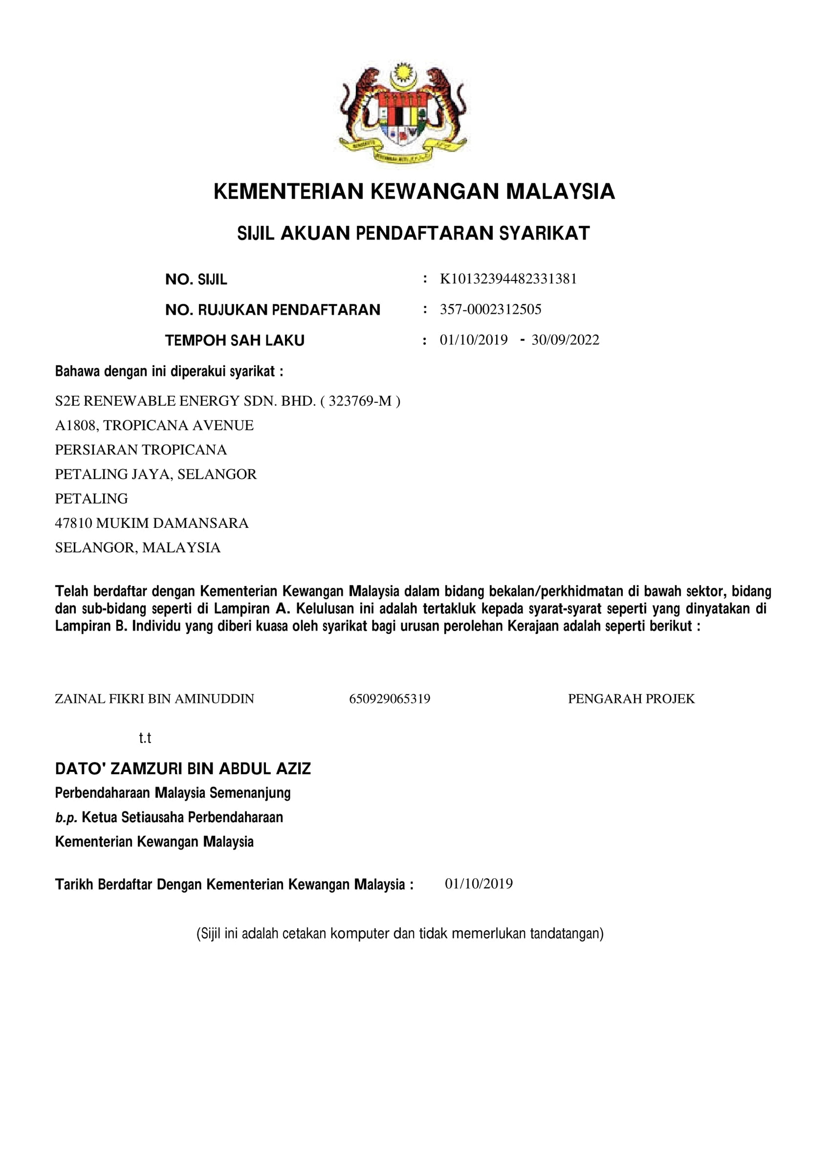 A18-08, Tropicana Avenue, Persiaran Tropicana, 47810, Petaling Jaya, Selangor, Malaysia.